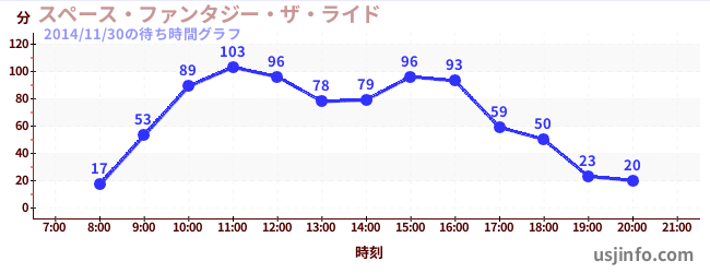 • スペース・ファンタジー・ザ・ライド$B$N(B2014年11月30日の待ち時間