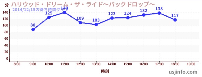 • ハリウッド・ドリーム・ザ・ライド〜バックドロップ〜$B$N(B2014年12月15日の待ち時間