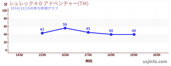 • シュレック 4-D アドベンチャー(TM)$B$N(B2014年12月15日の待ち時間