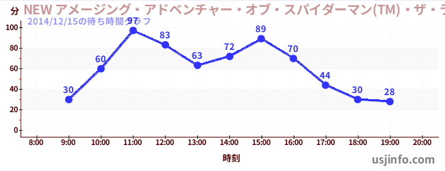• NEW アメージング・アドベンチャー・オブ・スパイダーマン(TM)・ザ・ライド 4K3D$B$N(B2014年12月15日の待ち時間