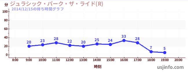 • ジュラシック・パーク・ザ・ライド(R)$B$N(B2014年12月15日の待ち時間