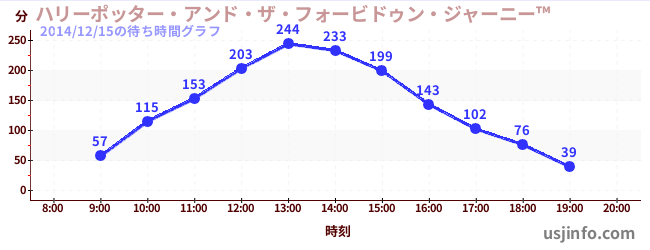 • ハリーポッター・アンド・ザ・フォービドゥン・ジャーニー™$B$N(B2014年12月15日の待ち時間