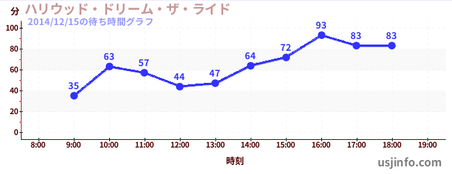 • ハリウッド・ドリーム・ザ・ライド$B$N(B2014年12月15日の待ち時間