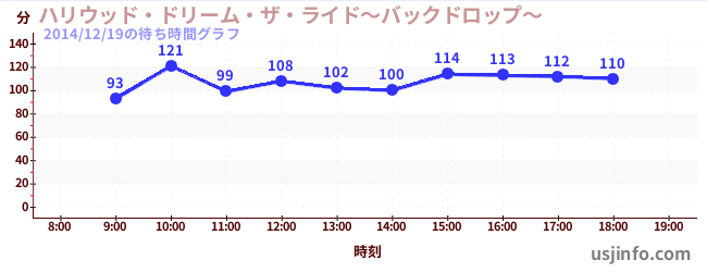 • ハリウッド・ドリーム・ザ・ライド〜バックドロップ〜$B$N(B2014年12月19日の待ち時間