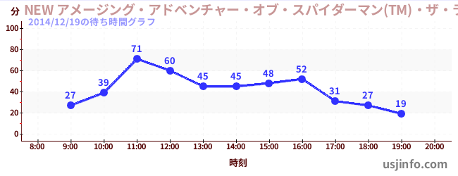 • NEW アメージング・アドベンチャー・オブ・スパイダーマン(TM)・ザ・ライド 4K3D$B$N(B2014年12月19日の待ち時間