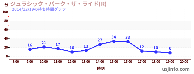 • ジュラシック・パーク・ザ・ライド(R)$B$N(B2014年12月19日の待ち時間