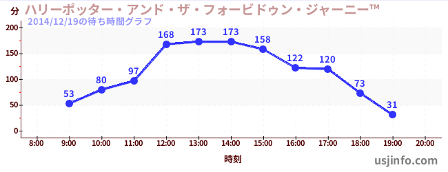 • ハリーポッター・アンド・ザ・フォービドゥン・ジャーニー™$B$N(B2014年12月19日の待ち時間