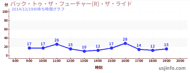 • バック・トゥ・ザ・フューチャー(R)・ザ・ライド$B$N(B2014年12月19日の待ち時間