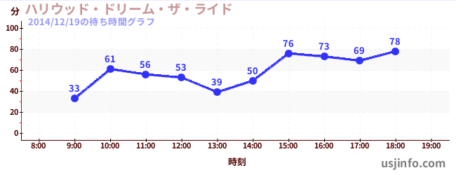 • ハリウッド・ドリーム・ザ・ライド$B$N(B2014年12月19日の待ち時間
