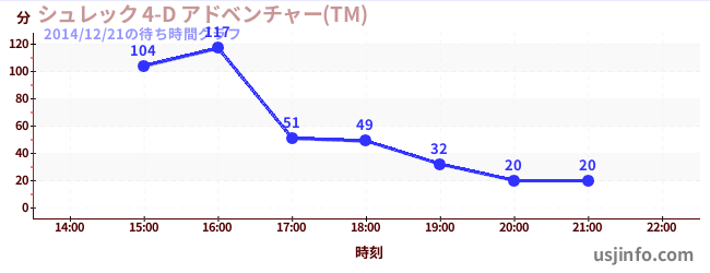 • シュレック 4-D アドベンチャー(TM)$B$N(B2014年12月21日の待ち時間