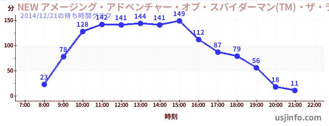 • NEW アメージング・アドベンチャー・オブ・スパイダーマン(TM)・ザ・ライド 4K3D$B$N(B2014年12月21日の待ち時間