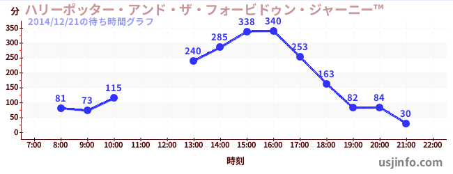 • ハリーポッター・アンド・ザ・フォービドゥン・ジャーニー™$B$N(B2014年12月21日の待ち時間
