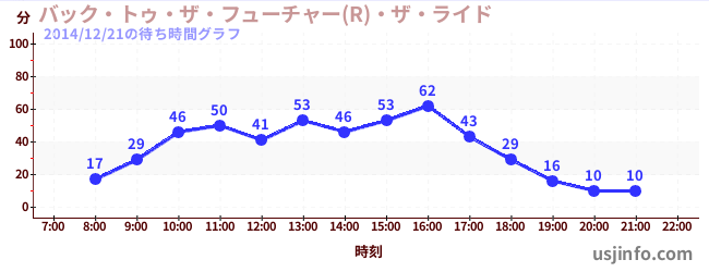 • バック・トゥ・ザ・フューチャー(R)・ザ・ライド$B$N(B2014年12月21日の待ち時間