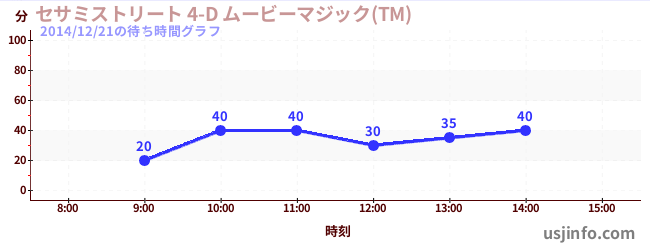 • セサミストリート 4-D ムービーマジック(TM)$B$N(B2014年12月21日の待ち時間