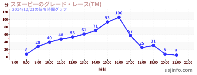 • スヌーピーのグレード・レース(TM)$B$N(B2014年12月21日の待ち時間