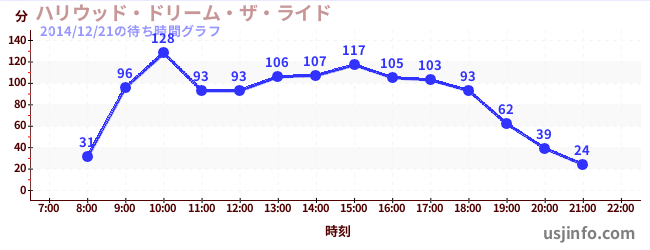 • ハリウッド・ドリーム・ザ・ライド$B$N(B2014年12月21日の待ち時間