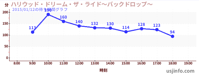 • ハリウッド・ドリーム・ザ・ライド〜バックドロップ〜$B$N(B2015年01月12日の待ち時間