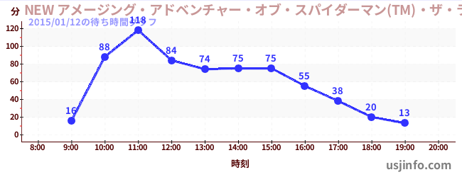 • NEW アメージング・アドベンチャー・オブ・スパイダーマン(TM)・ザ・ライド 4K3D$B$N(B2015年01月12日の待ち時間