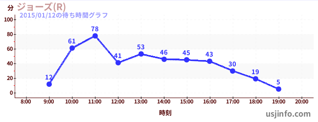 • ジョーズ(R)$B$N(B2015年01月12日の待ち時間