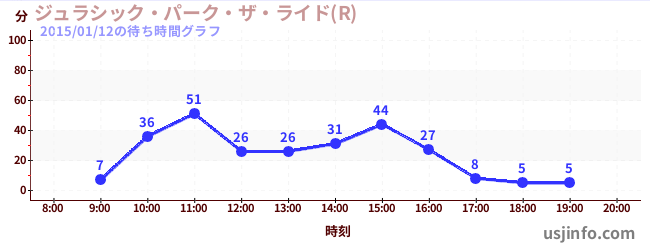 • ジュラシック・パーク・ザ・ライド(R)$B$N(B2015年01月12日の待ち時間