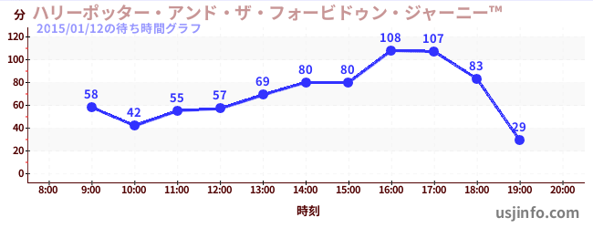 • ハリーポッター・アンド・ザ・フォービドゥン・ジャーニー™$B$N(B2015年01月12日の待ち時間