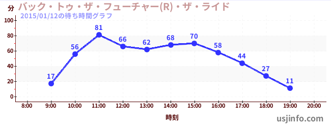 • バック・トゥ・ザ・フューチャー(R)・ザ・ライド$B$N(B2015年01月12日の待ち時間