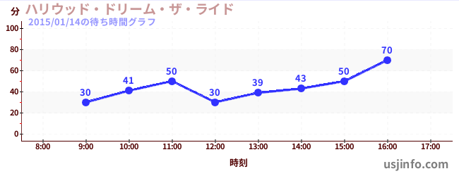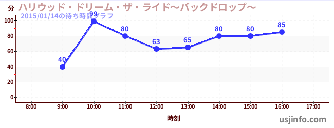 • ハリウッド・ドリーム・ザ・ライド〜バックドロップ〜$B$N(B2015年01月14日の待ち時間