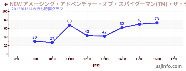 • NEW アメージング・アドベンチャー・オブ・スパイダーマン(TM)・ザ・ライド 4K3D$B$N(B2015年01月14日の待ち時間
