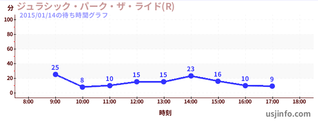 • ジュラシック・パーク・ザ・ライド(R)$B$N(B2015年01月14日の待ち時間