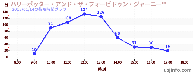• ハリーポッター・アンド・ザ・フォービドゥン・ジャーニー™$B$N(B2015年01月14日の待ち時間