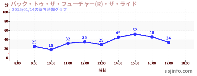• バック・トゥ・ザ・フューチャー(R)・ザ・ライド$B$N(B2015年01月14日の待ち時間