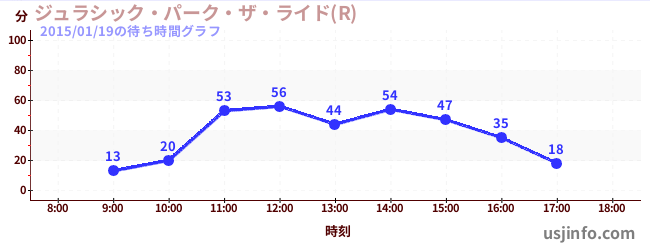 • ジュラシック・パーク・ザ・ライド(R)$B$N(B2015年01月19日の待ち時間