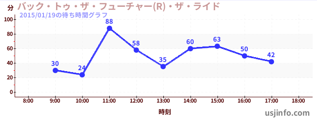 • バック・トゥ・ザ・フューチャー(R)・ザ・ライド$B$N(B2015年01月19日の待ち時間