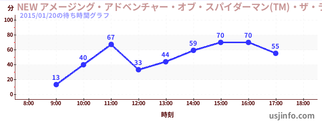 • NEW アメージング・アドベンチャー・オブ・スパイダーマン(TM)・ザ・ライド 4K3D$B$N(B2015年01月20日の待ち時間