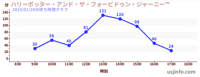 • ハリーポッター・アンド・ザ・フォービドゥン・ジャーニー™$B$N(B2015年01月20日の待ち時間
