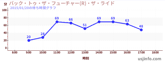 • バック・トゥ・ザ・フューチャー(R)・ザ・ライド$B$N(B2015年01月20日の待ち時間