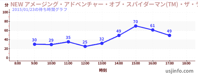 • NEW アメージング・アドベンチャー・オブ・スパイダーマン(TM)・ザ・ライド 4K3D$B$N(B2015年01月23日の待ち時間