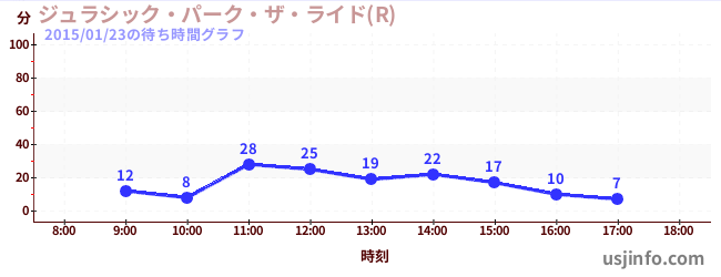 • ジュラシック・パーク・ザ・ライド(R)$B$N(B2015年01月23日の待ち時間