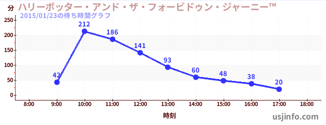 • ハリーポッター・アンド・ザ・フォービドゥン・ジャーニー™$B$N(B2015年01月23日の待ち時間