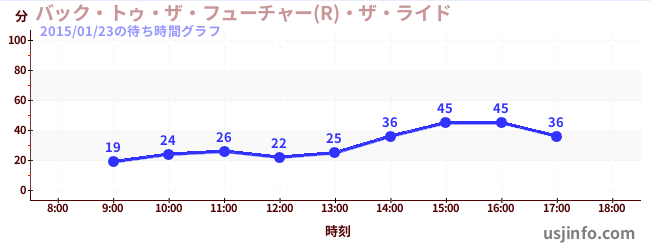 • バック・トゥ・ザ・フューチャー(R)・ザ・ライド$B$N(B2015年01月23日の待ち時間