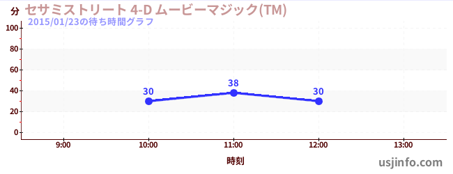 • セサミストリート 4-D ムービーマジック(TM)$B$N(B2015年01月23日の待ち時間