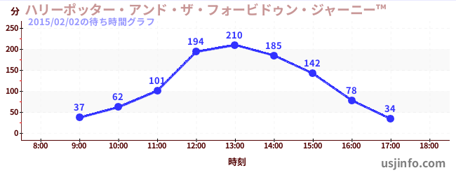 • ハリーポッター・アンド・ザ・フォービドゥン・ジャーニー™$B$N(B2015年02月02日の待ち時間