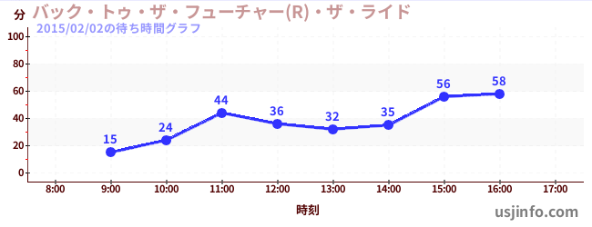 • バック・トゥ・ザ・フューチャー(R)・ザ・ライド$B$N(B2015年02月02日の待ち時間
