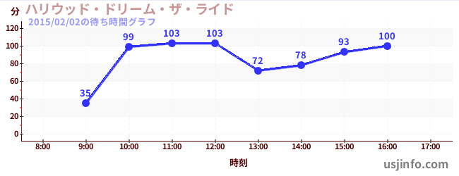 • ハリウッド・ドリーム・ザ・ライド$B$N(B2015年02月02日の待ち時間