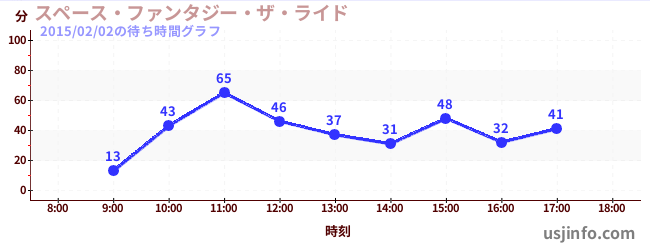 • スペース・ファンタジー・ザ・ライド$B$N(B2015年02月02日の待ち時間