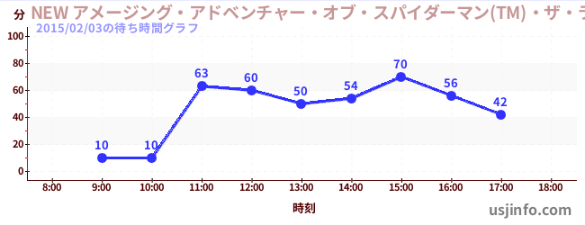• NEW アメージング・アドベンチャー・オブ・スパイダーマン(TM)・ザ・ライド 4K3D$B$N(B2015年02月03日の待ち時間