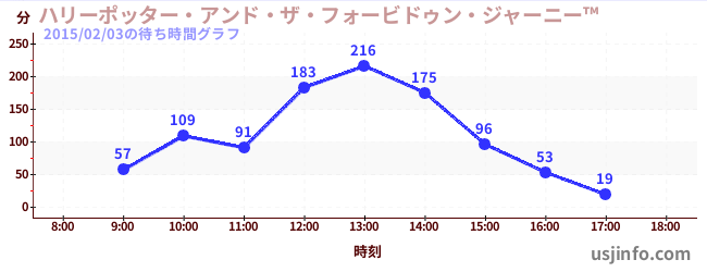 • ハリーポッター・アンド・ザ・フォービドゥン・ジャーニー™$B$N(B2015年02月03日の待ち時間