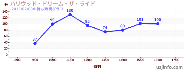 • ハリウッド・ドリーム・ザ・ライド$B$N(B2015年02月03日の待ち時間