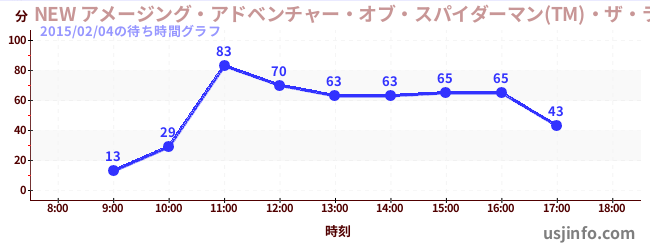 • NEW アメージング・アドベンチャー・オブ・スパイダーマン(TM)・ザ・ライド 4K3D$B$N(B2015年02月04日の待ち時間