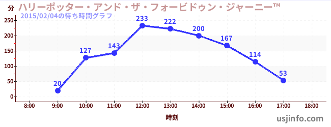 • ハリーポッター・アンド・ザ・フォービドゥン・ジャーニー™$B$N(B2015年02月04日の待ち時間
